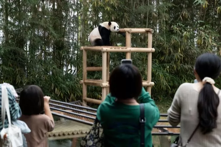 People look at the giant panda Le Bao at Everland Resort in the city of Yongin, South Korea, Sept. 30, 2025. (ANTARA/HO-Xinhua/Jun Hyosan)